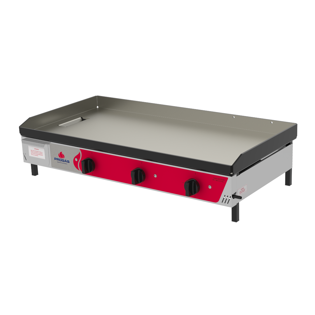 Como diferenciais, oferece a opção de kit prensa pão e pedestal, permitindo maior versatilidade no uso. Funciona a gás de baixa pressão, oferecendo economia e segurança no uso contínuo.