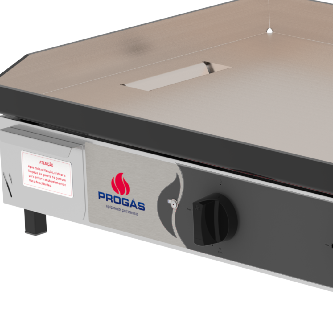 A Chapa Bifeteira a Gás Progás é ideal para lanchonetes, restaurantes e cozinhas profissionais que necessitam de alto desempenho e praticidade. Produzida em aço inox escovado, possui chapa reforçada e inteiriça de 6,3 mm, garantindo durabilidade e excelente retenção de calor. Equipada com queimadores de gaveta móvel, proporciona aquecimento uniforme e maior eficiência no preparo de alimentos. Conta ainda com gaveta coletora de gordura, que facilita a limpeza e a manutenção diária. Funciona a gás de baixa pressão, oferecendo economia e segurança no uso contínuo.