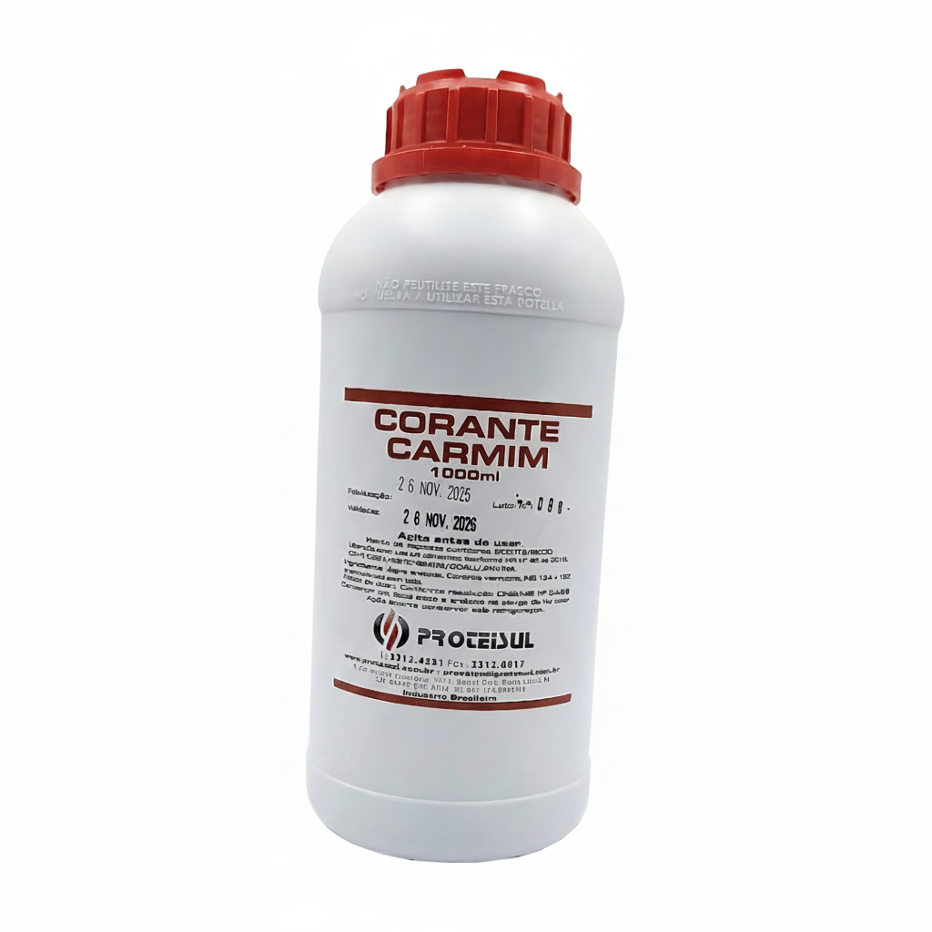 O Corante Carmim Proteisul é amplamente utilizado na indústria alimentícia, especialmente na fabricação de linguiças, proporcionando coloração vermelha intensa e uniforme. Sua formulação é segura, estável e aprovada para uso em alimentos conforme normas vigentes da ANVISA.