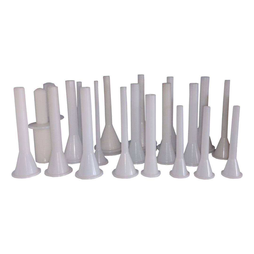 Com encaixes compatíveis para diferentes máquinas e marcas, os funis oferecem excelente durabilidade e desempenho, garantindo um processo de ensacamento mais rápido, seguro e eficiente.
