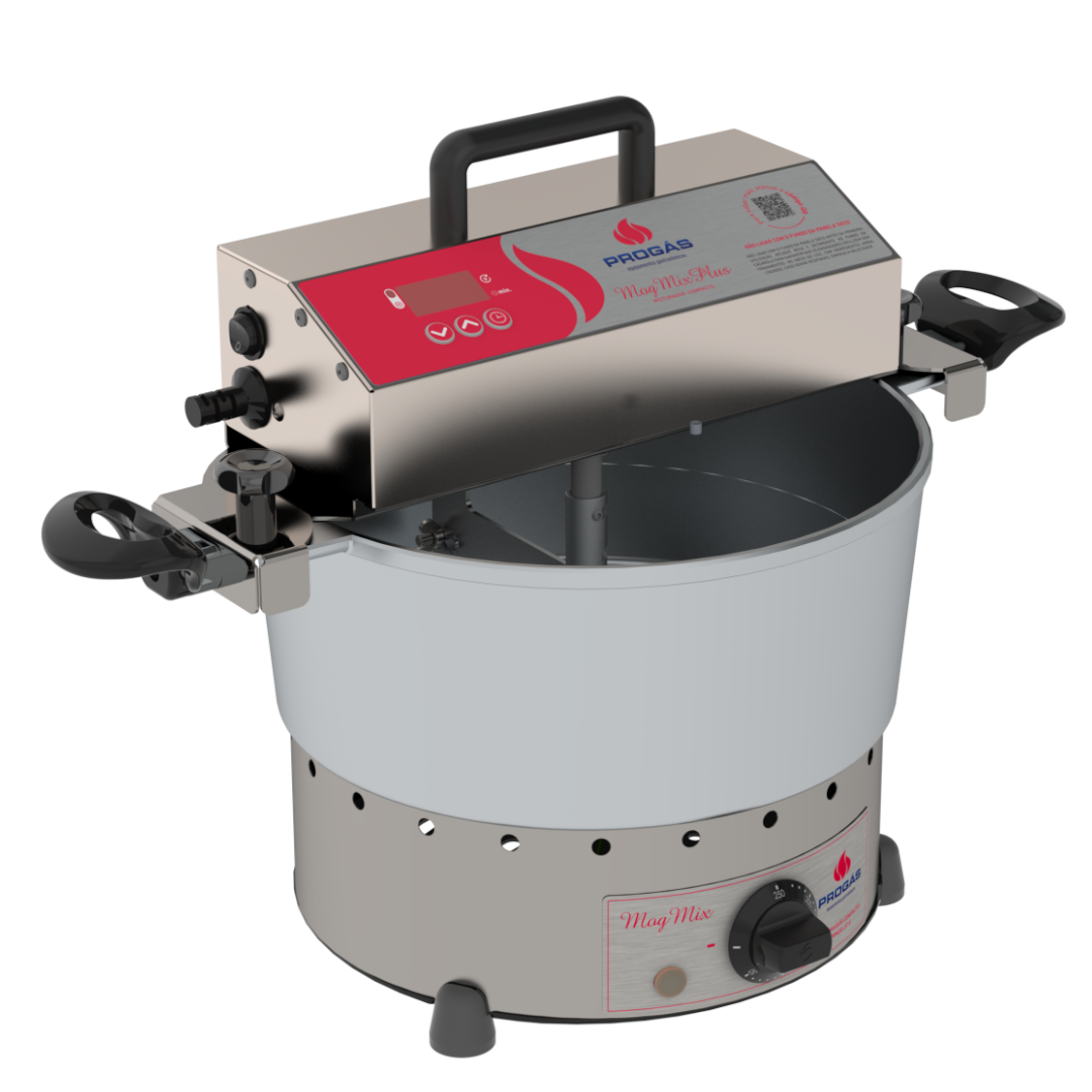 O Misturador Elétrico é compacto, versátil e indispensável para confeiteiros e doceiros que buscam praticidade e alto desempenho. Disponível nas versões elétrico e a gás, é ideal para o preparo de doces que precisam ser mexidos constantemente, como brigadeiros, geleias, doces de colher e muito mais. Possui novo cabeçote em chapa de aço inox, caçarola em alumínio fundido com excelente distribuição de calor, raspadores em silicone, temporizador digital e controle eletrônico de velocidade. O beep de aviso indica o fim do tempo programado, e a chave de troca de voltagem garante flexibilidade no uso. Com resistência de 2000 W e capacidade de 7 litros, oferece eficiência e qualidade para produções artesanais e comerciais.