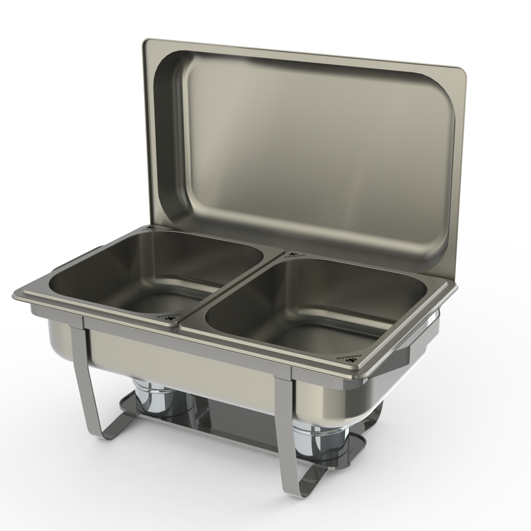 O Rechaud 9 Litros é a escolha ideal para buffets, restaurantes, hotéis e eventos que necessitam manter os alimentos aquecidos por mais tempo. Fabricado em aço inoxidável de alta resistência, garante durabilidade, fácil higienização e design moderno. Possui 2 cubas gastronômicas (GN) removíveis, que podem ser utilizadas em outros rechauds ou buffets, oferecendo versatilidade. Conta ainda com 2 queimadores que asseguram aquecimento uniforme e eficiente. Seu sistema modular e desmontável facilita o transporte e a montagem, tornando-o prático e funcional para uso profissional.
